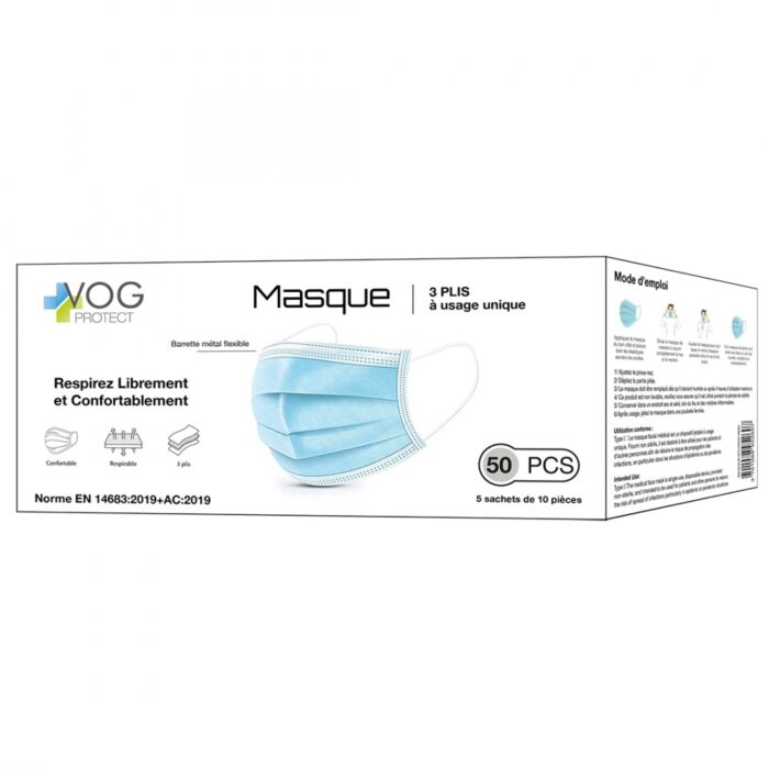 Boite de 50 Masque 3 PLIS TYPE I médical EN14683