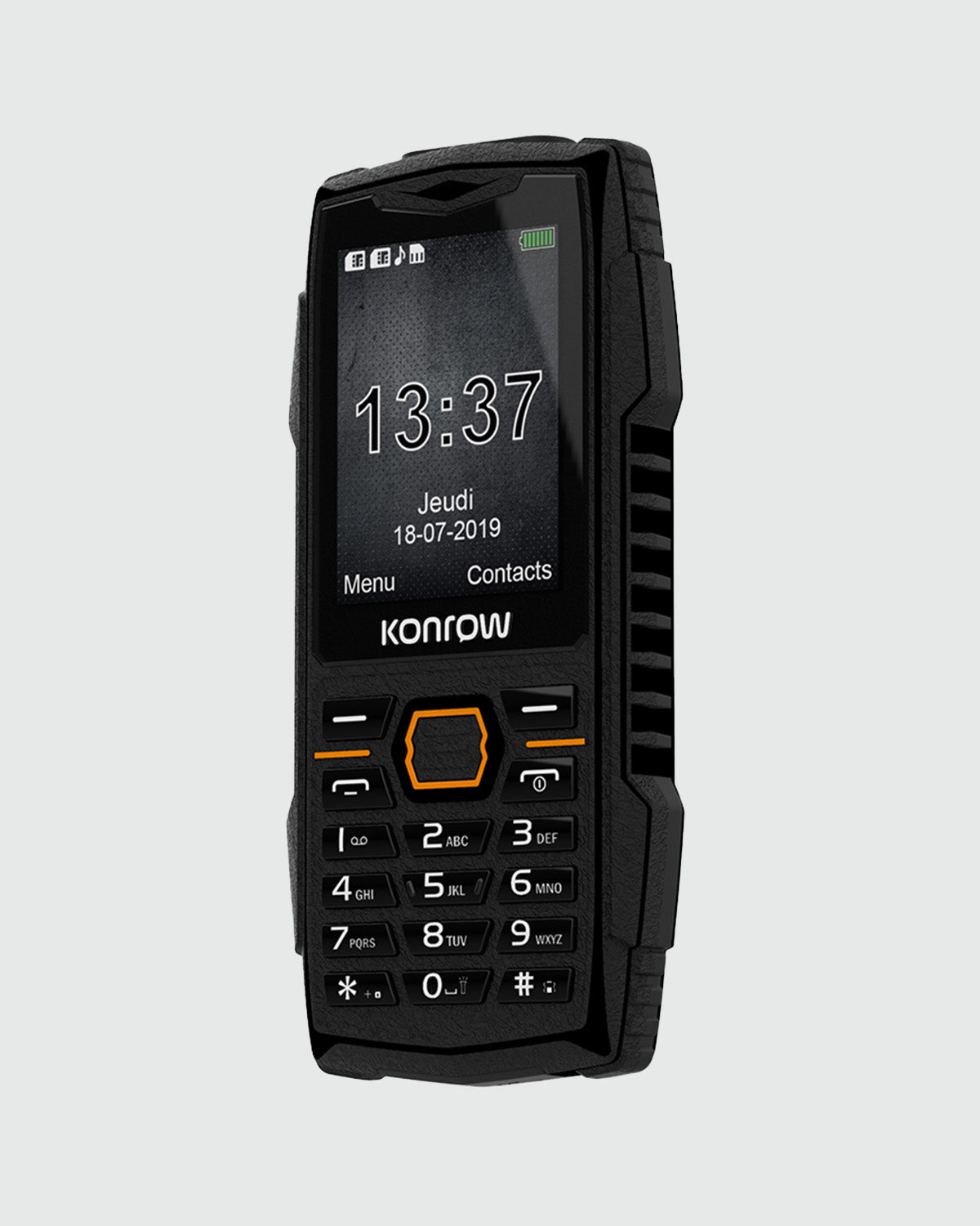 Conçu pour résister aux conditions les plus extrêmes, le KONROW STONE PLUS est le téléphone robuste par excellence. Doté d’un écran de 2,4 pouces, il est protégé par une coque renforcée et certifié IP68, garantissant une résistance à l’eau, à la poussière et aux chocs.